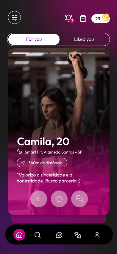 Nada de matchs longe de você. Filtre por localização e veja quem está nas academias próximas